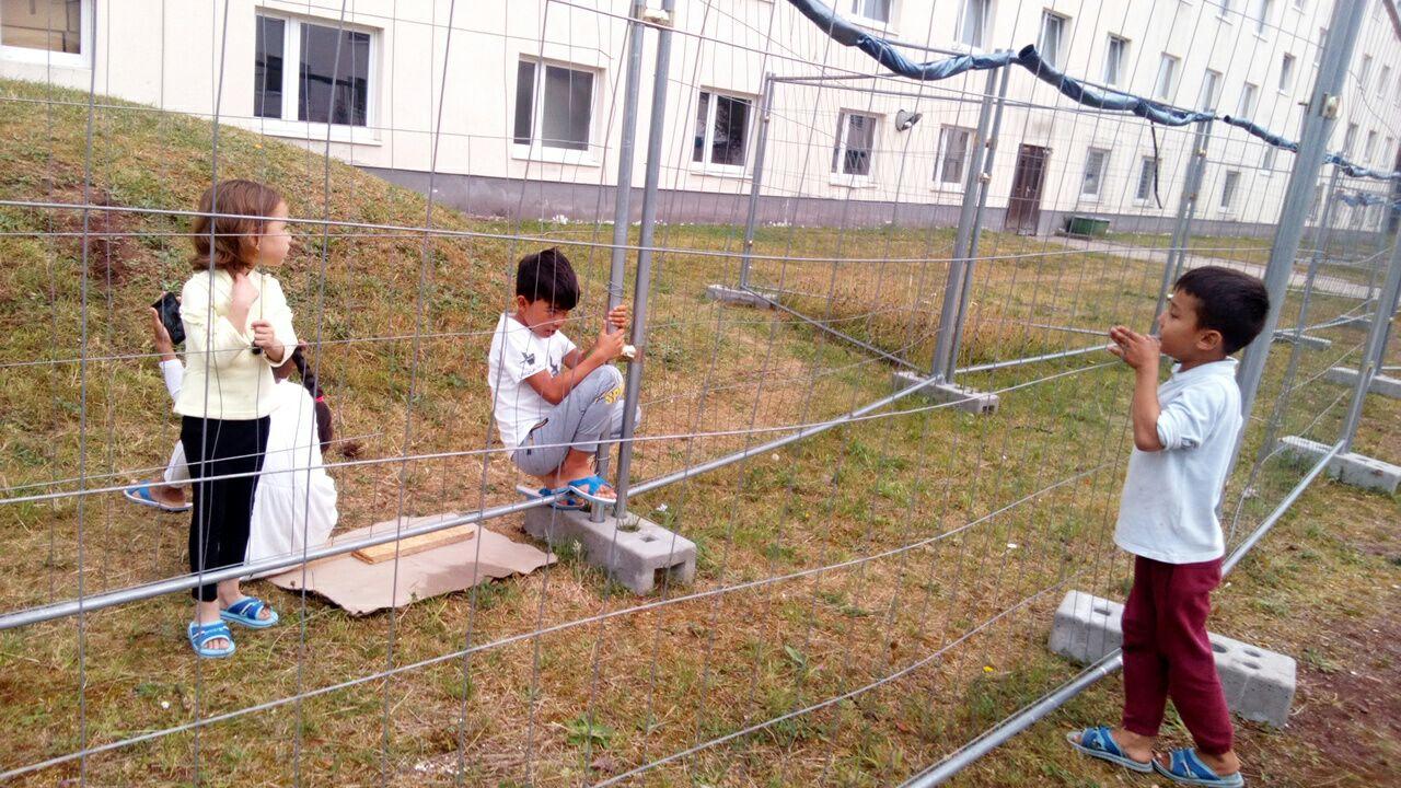 Spielzeuge. Für ungefähr 20 Kinder, die heutzutage in Quarantäne Gebäude sich befinden, gibt es hier kein einziges Spielzeug, kein Spielgerät, keine Kinderbücher, kein Malzubehör, kaum was.  Manchmal, kriegen sie von erwachsenen Männer ein Fußball. Ein Fußball für 20 Kinder. Soll man hier noch was erklären?